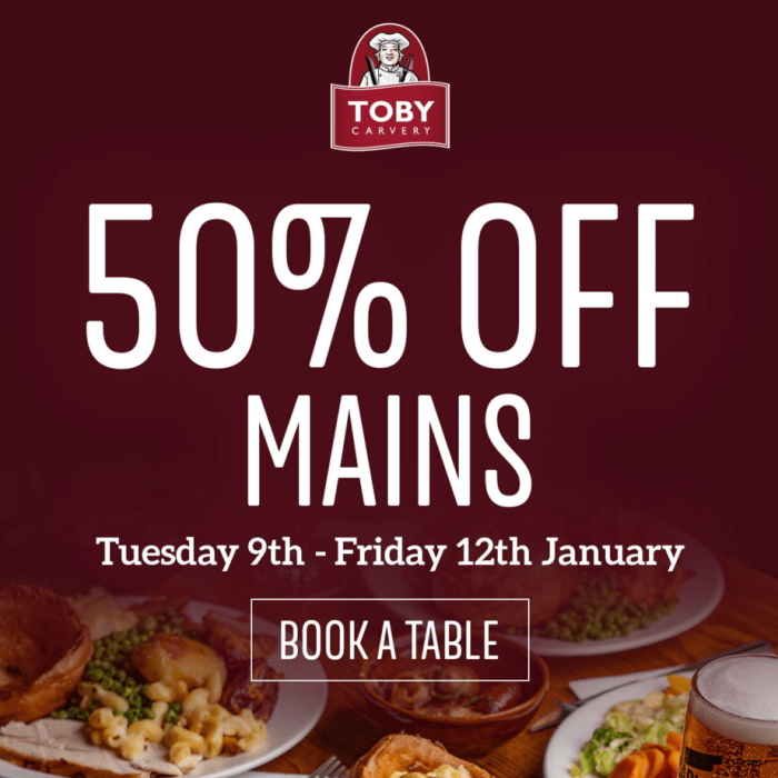 2) I often sign up to marketing emails when we plan to visit a restaurant as they frequently thank you for signing up with a cheeky money off your next visit email. I can’t remember if Toby Carvery sent me an offer for signing up but ever since I did, I’ve had emails on a monthly basis offering me 50% off at my local. We love a Toby Carvery so when it’s £3.75 each for a really good meal, we can’t say no!