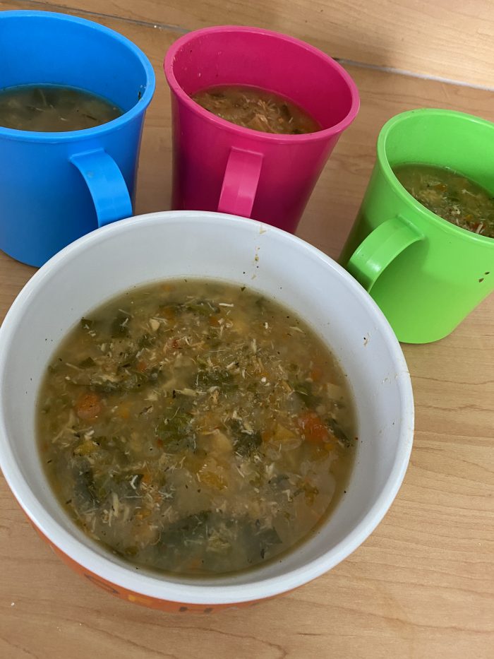 It’s basically a pre-prepared soup mix that I bought from Morrisons for £1 – I’m pretty sure it was called something like Winter Broth Mix and includes all sorts of veg and some pearl barley. I added in some Instant Pot shredded chicken that I’d made a batch of the night before and sprinkled in a healthy amount of dried chilli flakes then just cooked it on the hob for the time it said on the packet.
