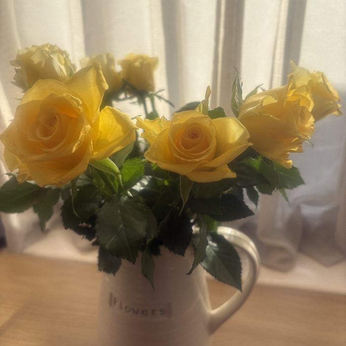 I don’t normally buy roses as I’m not a fan of them generally but this little bunch was reduced to £1.49 and I thought they’d look nice in this little jug that I recently collected from my old house along with loads of other stuff that I’d pretty much forgotten I even had!