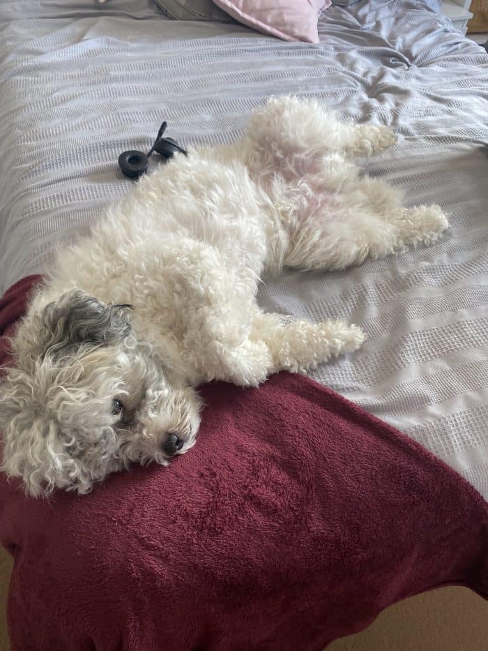 Another huge plus to working from home is this guy – who literally sits on the bed near my desk all day long.