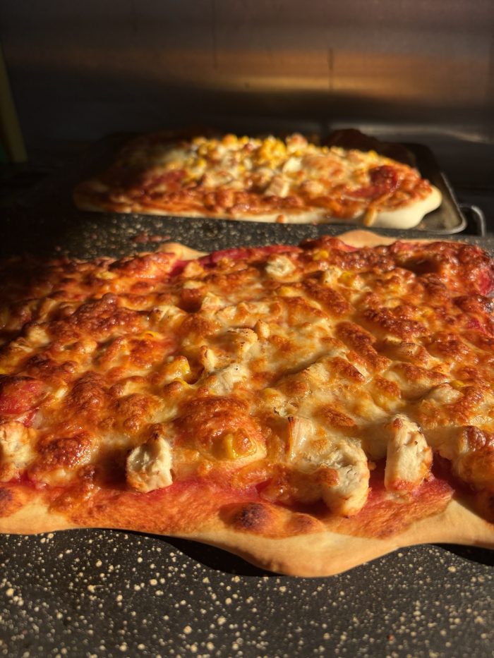 4) We had homemade pizza for tea this week using some pizza dough that we had in the freezer from our local farm shop, some chicken that we had leftover from Sunday dinner and some tinned sweetcorn from the cupboard.