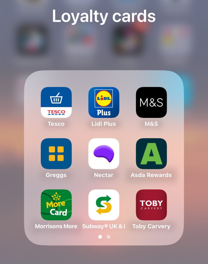 I never used to really use loyalty schemes other than the biggies like Tesco but over the last year or so, I’ve been much better and have loads downloaded on my phone.