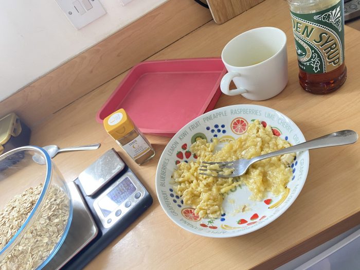 1) I had some bananas to use up so instead of using my usual go-to banana recipes, I thought I’d attempt a flapjack instead. I’ll be honest though, it wasn’t the biggest success ever as the silicone baking tray that I used was too big so by the time I’d spread the flapjack mixture out, it was practically paper-thin.