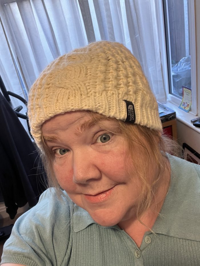 3) OK, this isn’t the best picture of me but I bought a hat from the charity shop in the village this week to keep me warm in the Winter.