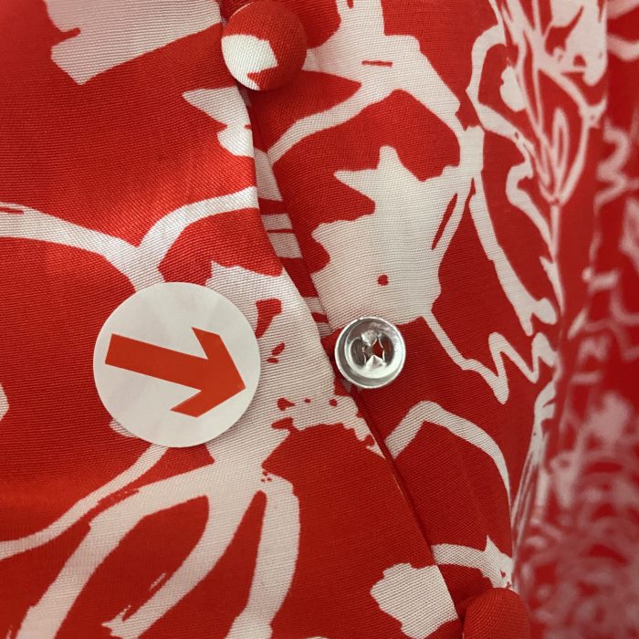 One of the buttons has lost its fabric covering which really makes it stand out and I suspect from how unworn the dress looks and feels that it happened before it was even worn. The first thing I did was to check the tag on the inside of the skirt and, as with most items that come with buttons, there’s a little spare one stitched onto the tag so it’s a super quick fix and I have a lovely new dress.
