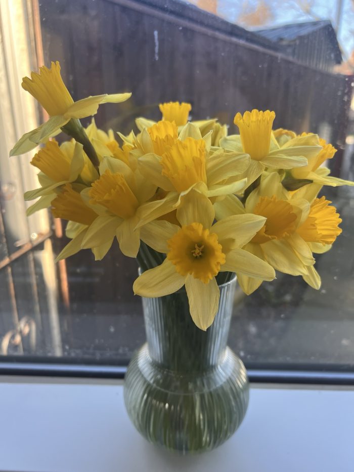 My favourite flowers are daffodils and I really do want to plant some in the garden to flower next Spring but for now, bargain daffs from the shop will do me. This is two bunches reduced to 40p each in the fruit and veg shop in our village.