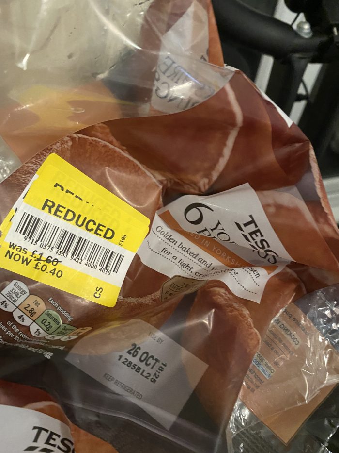 6 big Yorkshire puddings for 40p was too good a bargain to leave on the shelf so I bought them and replaced my planned meal for tea (fajitas) with Yorkshire Pudds and some mince and onions from the freezer. I then moved everything on a day and skipped Sunday Dinner, replacing it with the mac and cheese that I’d originally planned for Saturday and saving money on buying the Sunday roast meat and veg which I always buy on a Sunday morning as I like to see what’s on offer.