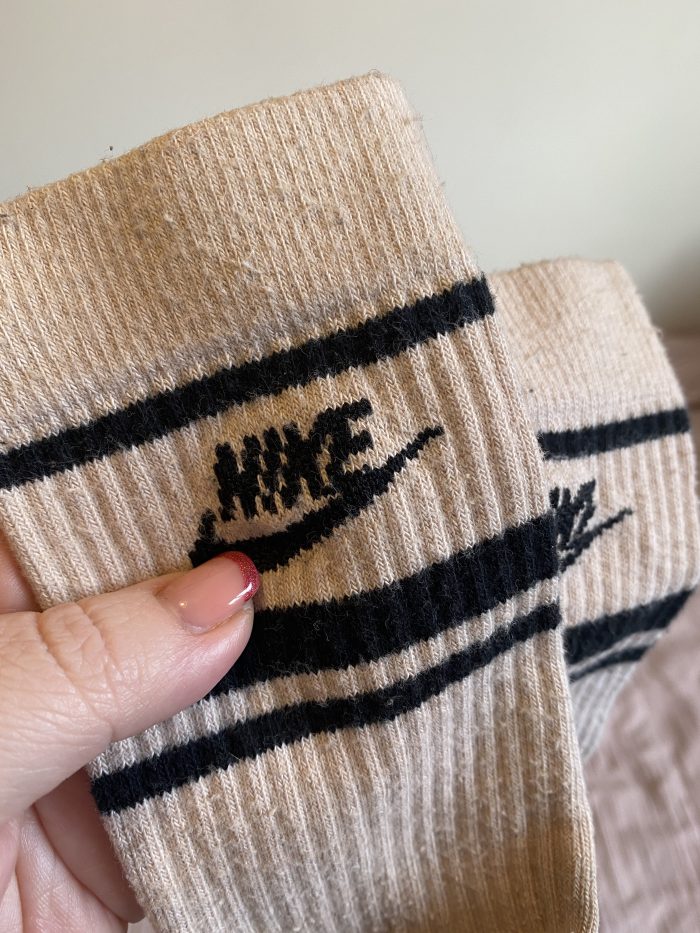 So… we soaked a pair of white Nike socks in a bowl of water that we’d steeped some teabags in for half an hour beforehand and this is the result…