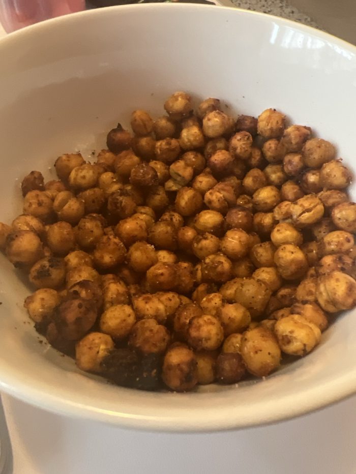 My favourite snack food at the moment is air fryer chickpeas which are super cheap, pretty health and ridiculously easy to make. They’re basically just made by drying off some canned chickpeas, spraying with some oil, sprinkling with some spices and then throwing in the airfryer until they’re crispy.