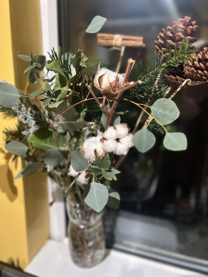 I didn’t have a vase that worked with them as I’d used my favourite one on the roses so I just made my own with a plastic bottle that I had in – just chopped the top off it with a pair of scissors and voila, a second vase.