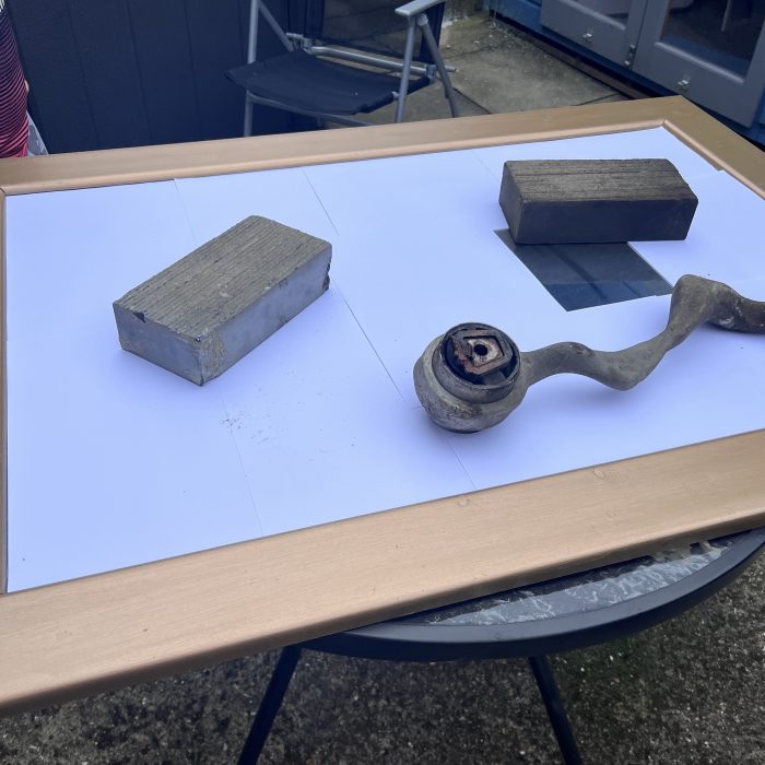I decided against using masking tape like a sensible person would and went with some pieces of paper secured with some bricks and a random old car part. The light today is terrible and I can’t get a good photo but I’ll add one tomorrow if I can – trust me though, it looks so much better!