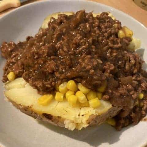I made it with some mince that I bought from the reduced section a while ago and bulked it out with some Quorn mince and a handful or two of red lentils – trust me, no-one has ever noticed when I’ve done that and it makes it go further.