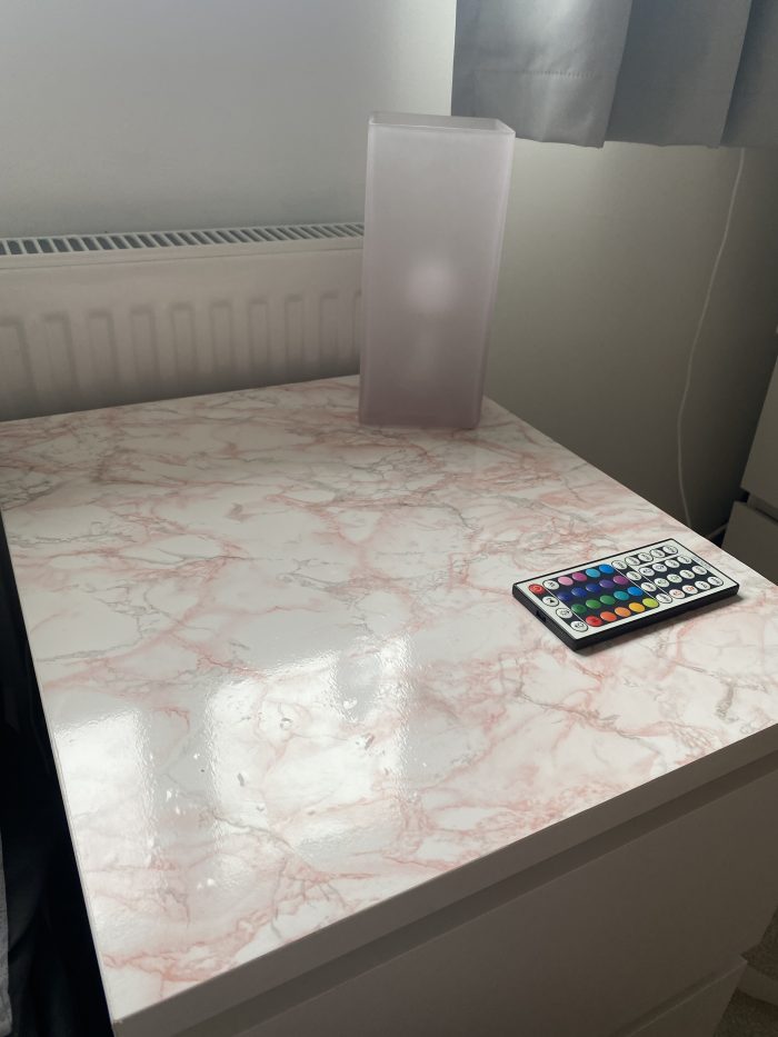 It was very slightly bumpy before the makeover as she’d spilt something on there a while ago that made up a bit but that’s mostly hidden as you can’t see the little bumps unless you’re really looking for them when you’re stood in front of the cabinet – I’m pretty sure my phone has just decided to highlight every single bump and air bubble in this picture though!