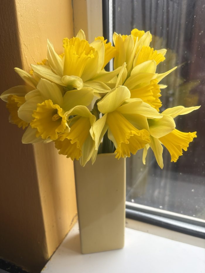 I spotted these little daffodils when I popped to Lidl late on one night for some bread flour. They had a big box of them all reduced to 10p so I picked up two and popped them in a vase when I got home.