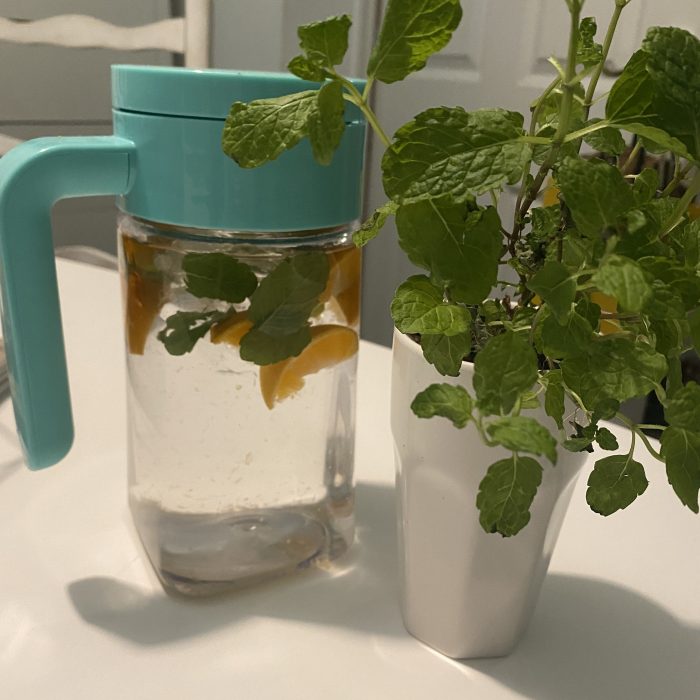 Well, this week I’ve been using the mint leaves and some leftover Christmas clementines to make my favourite mint and orange infused water!