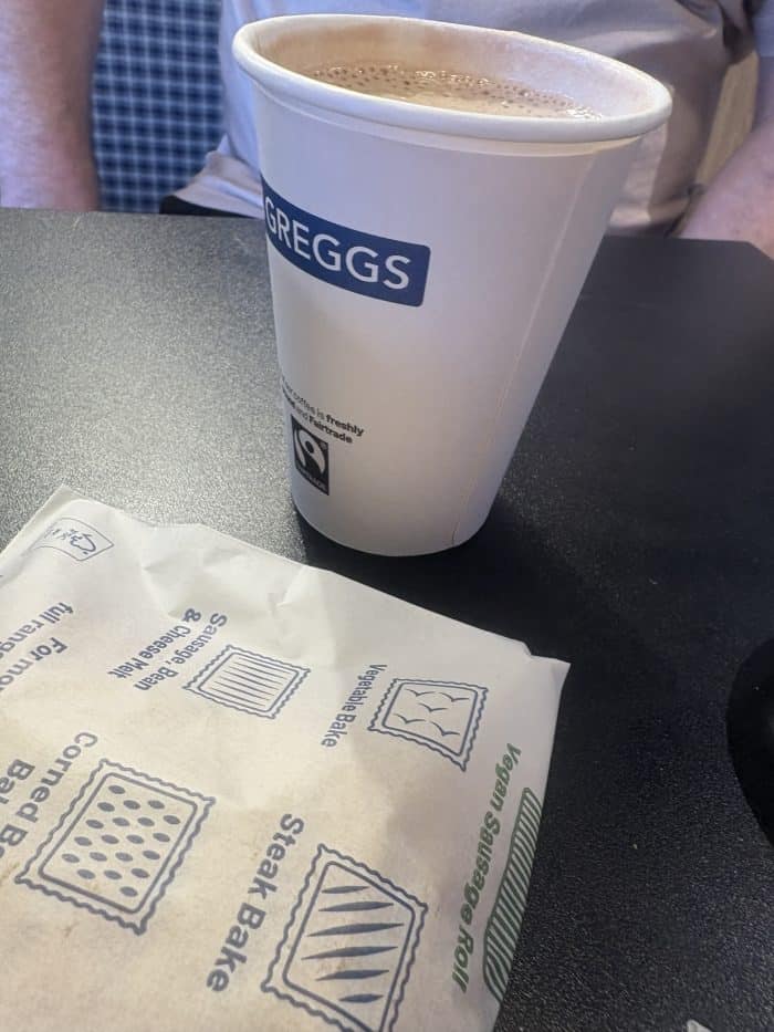 It’s less than a ten minute walk usually but it took me a bit longer than it normally does and I felt a bit wiped out when I got there so I had a little cup of tea and half a sausage roll in Greggs so I could have a sit down before I walked back home. They were free as I always use the Greggs app when I buy anything in there and I’d hit the number of purchases needed to get a hot drink and a bakery item free.