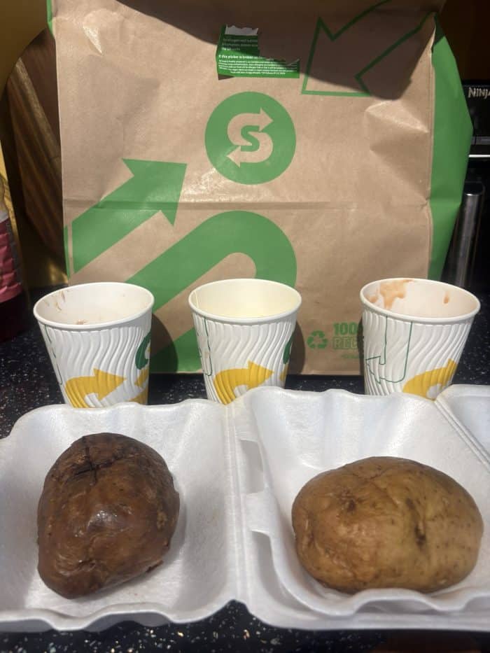 This week, I got a notification on my phone to say that Subway had some magic bags that needed saving for that day so I clicked on it and found that our local subway had a few different bags available – one of which being a jacket potato bag for £4.