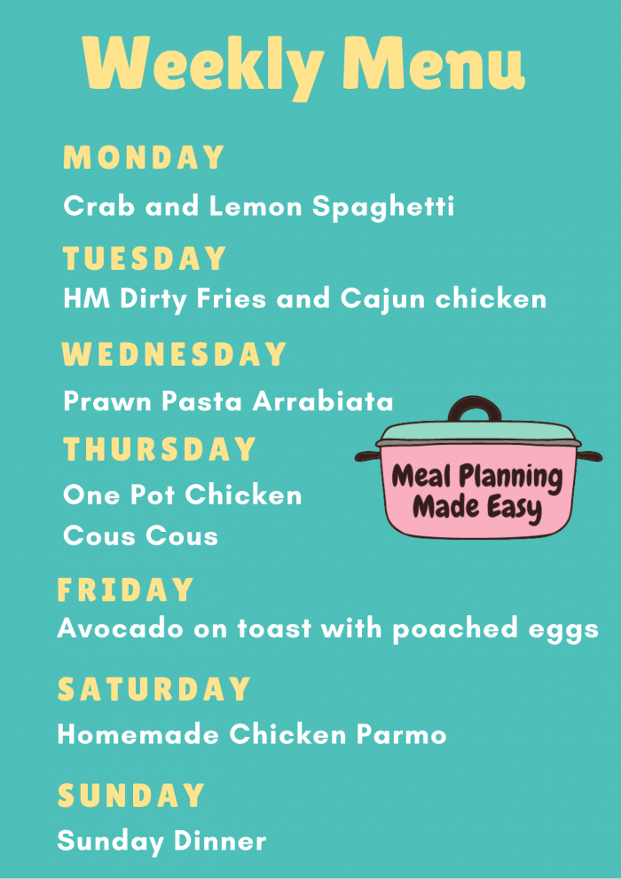 5) And again, back to the first photo, you’ll see my meal plan board attached to the side of the fridge with this week’s meal plan written on it. I try and update this every week as it keeps me on track. Here’s my meal plan for this last week…
