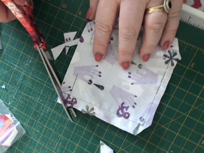 Step 4 – Using a sharp pair of scissors, cut off the extra fabric from the corners to make it as neat as possible when you turn it the right way round.