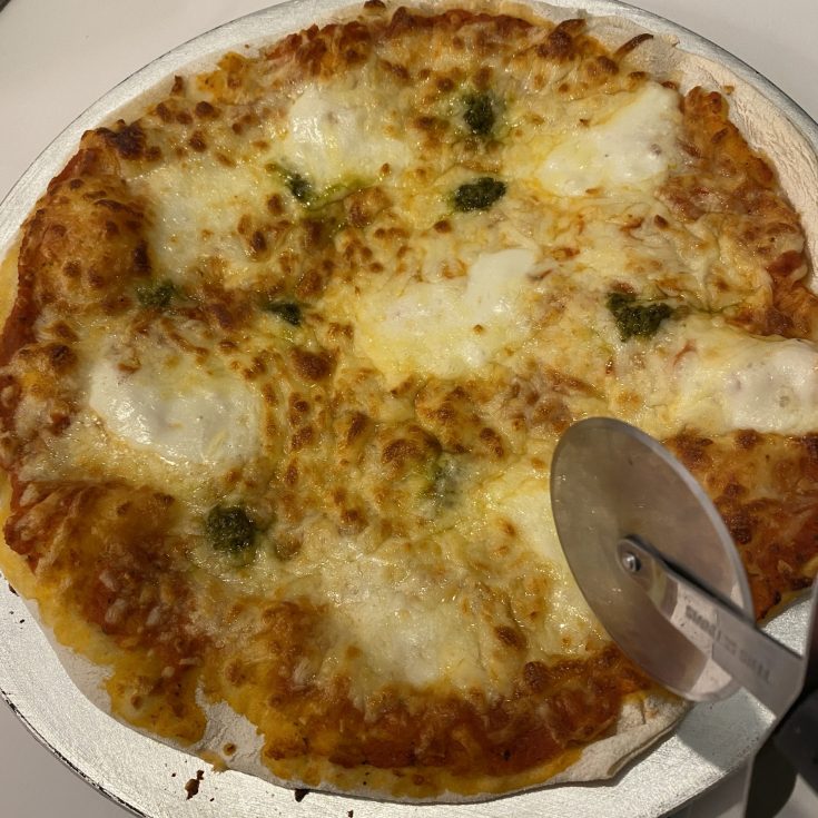 A plain cheesy pizza is amazing with some pesto and rocket if you fancy something a bit posher.