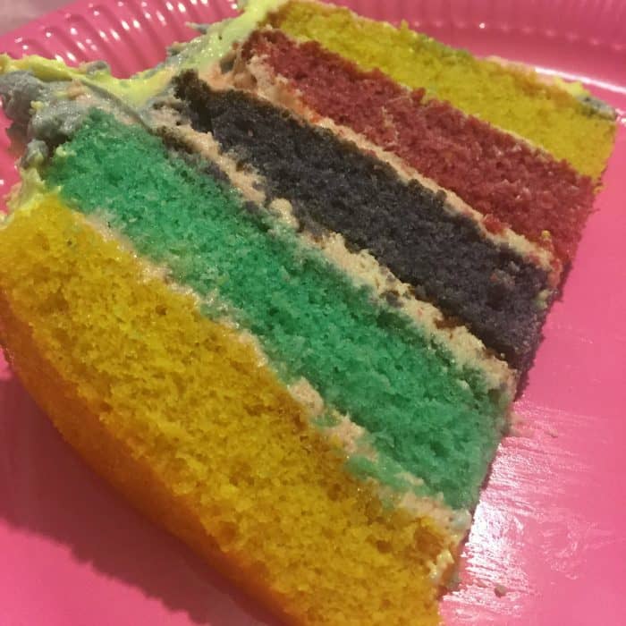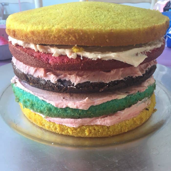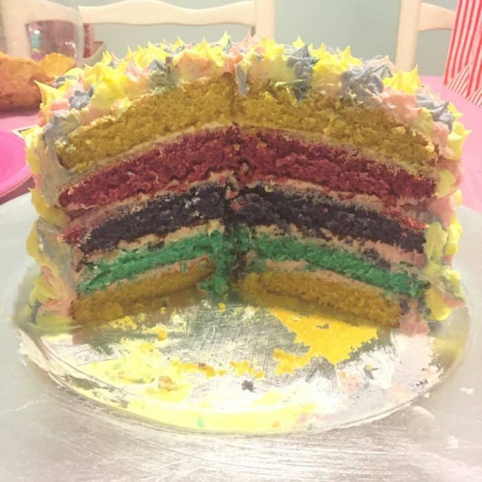 I definitely wasn’t blessed with many baking skills so all I’ll say about the homemade rainbow layer Birthday cake is that if I can make it, you certainly can!