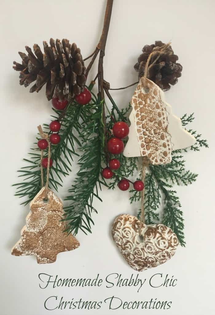 I’m quite fussy when it comes to what goes on my Christmas tree but these cute little shabby chic Christmas decorations will definitely be taking centre stage as I love them – they’re much more me than the shiny glittery traditional style baubles that you normally see. The kids are all about the glitter so our main tree is quite traditional with lots of sparkle and big traditional decorations but I love these cute little shabby chic Christmas decorations that much that I think I’m going to buy a cheap little 3ft tree to go in the kitchen and fill it with this sort of style decoration – lots of which will probably be homemade, so watch this space.
