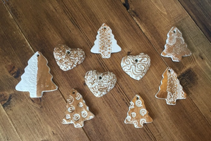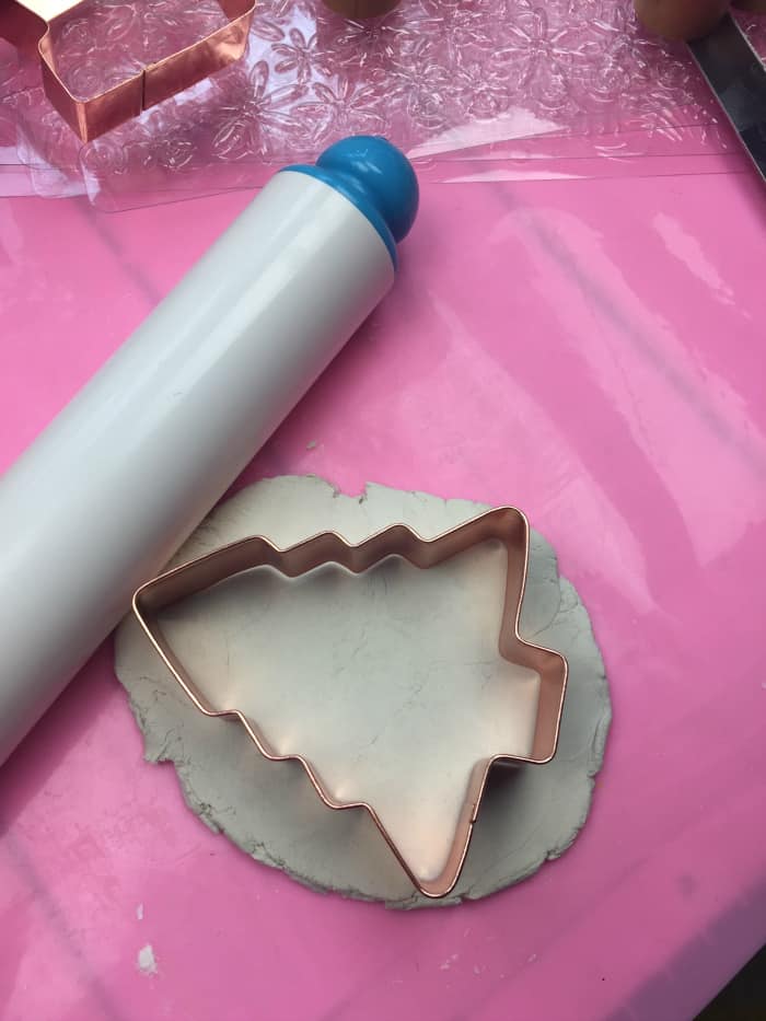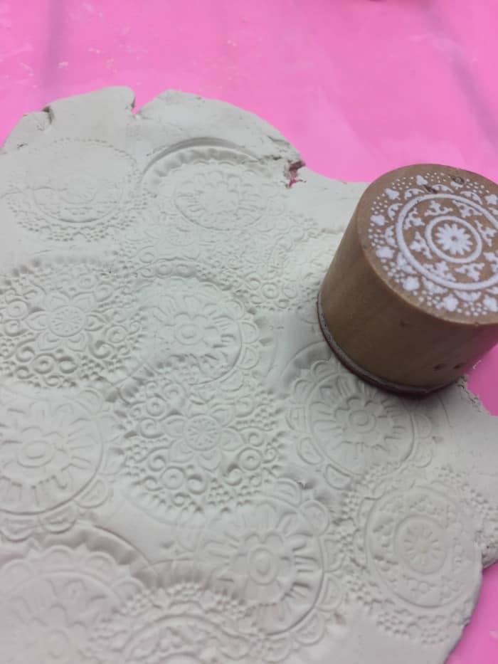 Once she’d made a few with lace, she got bored of that and wanted to try something a bit different so Jen whipped out some cool little stamps that could be gently pushed into the clay randomly leaving a really pretty pattern.
