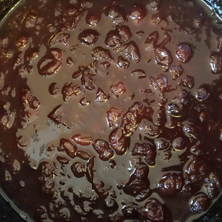 My first attempt (on Christmas Eve no less) didn’t go well at all as I clearly didn’t stir it frequently enough and it ended up with some burnt bits sticking to the bottom of the pan adding a little bit of smokiness to the flavouring of the sauce I managed to rescue – and not in a good way! It tasted awful but it was too late to buy more cranberries to have a second bash at it so our Christmas Dinner last year was cranberry-less.