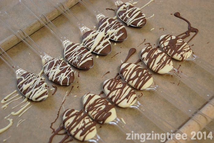 Christmas mugs filled with treats and a chocolate spoon