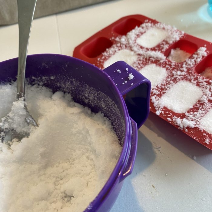 The fancy ones did turn out lovely but they’re actually not that practical as I have a little jar that I put the bombs in and they really take up too much space. Next time, I’ll stick to the ice cube tray shapes.