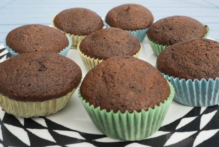 - Pour into cupcake cases and bake for 12-15 minutes. You can test they’re ready by poking them with a knife, if it comes out clean then they’re done.