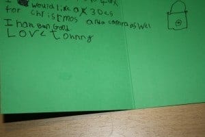 We use the Royal Mail Santa Service to send our letters to Santa – As long as your child’s letter states their name and address (hence me chopping the top of the photos of ours) and you remember to attach a stamp to your letter then Santa and his elves will try and reply back to you.