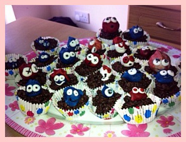 To make the actual cakes, melt 300g of chocolate and stir in 120g of Rice Crispies or Cornflakes. Spoon the mixture into cupcake cases and pop in the fridge to set while you lick the bowl out make your puffles.