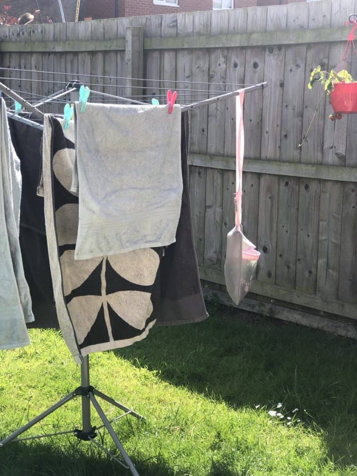 - Dry outside on a windy day. It’s really important that you do this or at the very least pop them in your tumble drier if you have to but if you put them over the radiator or your indoor drier then they’re not going to dry as soft. Don’t ask me why they just don’t. 😉
