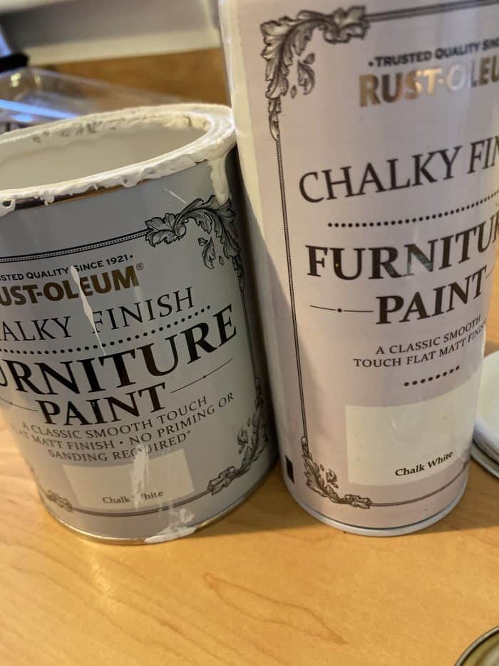 I literally set off for B&Q withing five minutes of deciding to do it and was back half an hour later with a tin of chalk paint, a tin of clear varnish and a small roller ready to start.