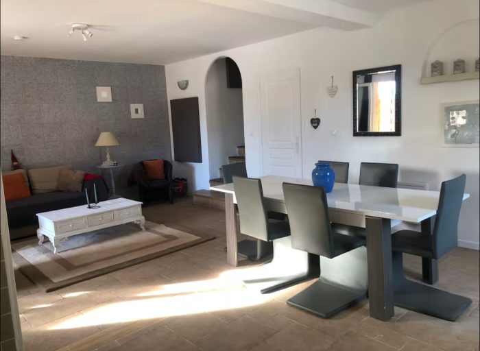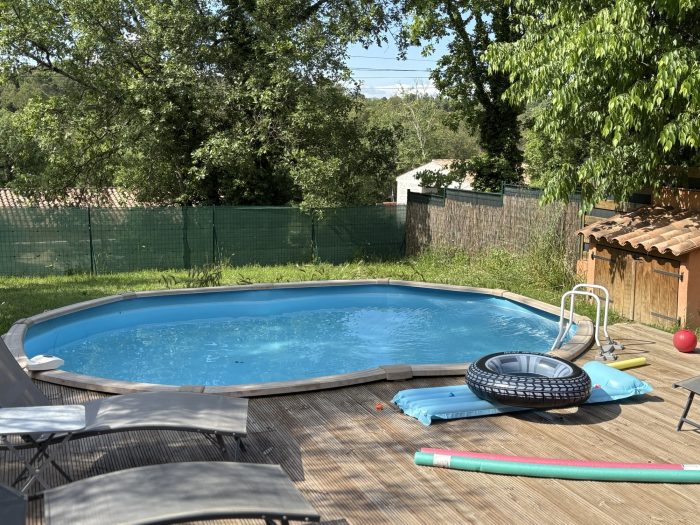 We found a four bedroom farmhouse that had three bathrooms, lots of great space in the open plan living area downstairs and a huge amount of outdoor space surrounding a small swimming pool.