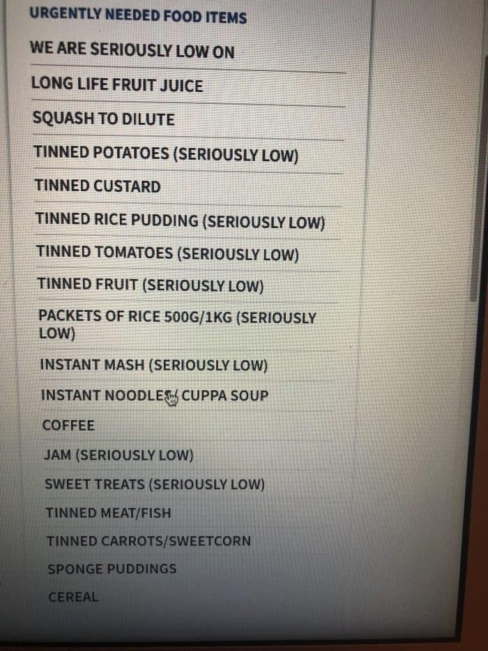 If you wanted to add a few bits into your weekly shop then I don’t think you can go far wrong with the above but obviously, your local food bank can tell you exactly what they need though if you reach out to them directly. Here’s the list that is on our local food bank’s website: