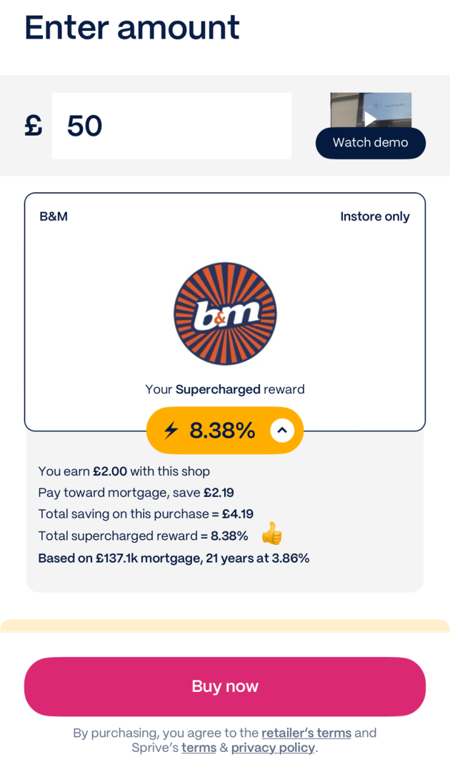 To give you an idea of how you could make Sprive work for you with no inconvenience or hassle… If you do a £75 food shop at one of the big supermarkets who are partnering with Sprive (Asda, Morrisons, Tesco) then that would save you SIX months off your mortgage term. for less than a minute’s worth of effort each week!