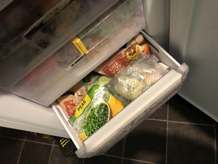 This is my frozen veg drawer and it’s filled with everything from peas to peppers and from diced onion to mixed veg. I love frozen veg because it’s not only great value for money but it also means that I can serve veg with every meal without having to prepare it or worry about making sure we have veg in through the week which would usually mean a mid-week trip to the shop.
