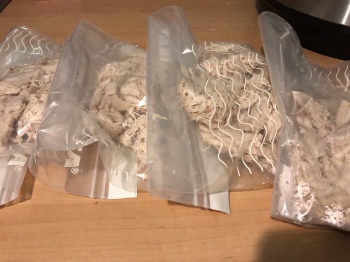 It takes so little time to do that if I pop to the supermarket on a night and see some reduced chicken or a cheap gammon joint then I know I can use it to make these and have something ready to pop in the freezer in no time at all – the batch of shredded chicken that I made here was made with some ridiculously reduced price chicken that I was lucky enough to be in the right place at the right time for.