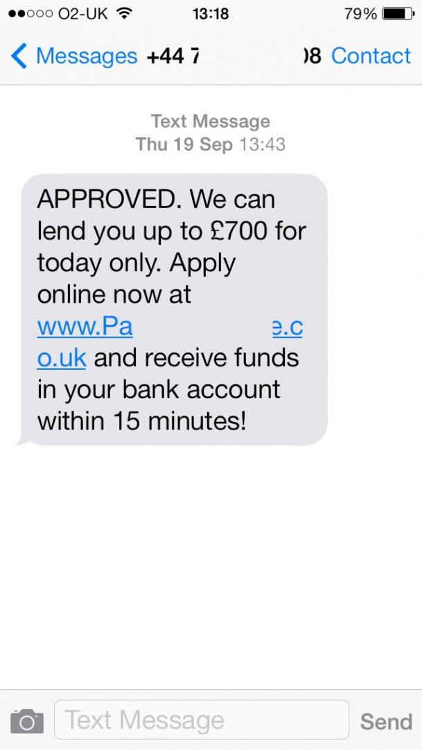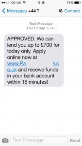 And now, today I get a text message from a company telling me I’m pre- approved for £700 which I could have within 15 minutes if I apply online now! A text message!