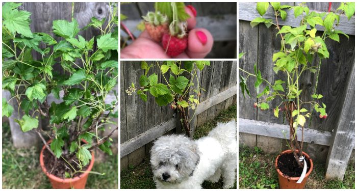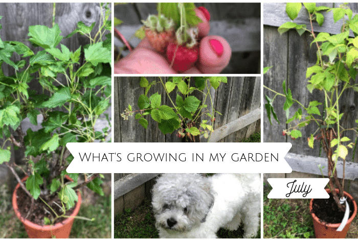 Our raspberry and blackcurrant bushes are looking good even though we’ve re-potted them into pots rather than planting them in the ground as we should. We want to stick to container gardening really as our soil is rock hard and nothing ever grows well when planted in it so we’re hoping that the fruit bushes will do OK in the pots.
