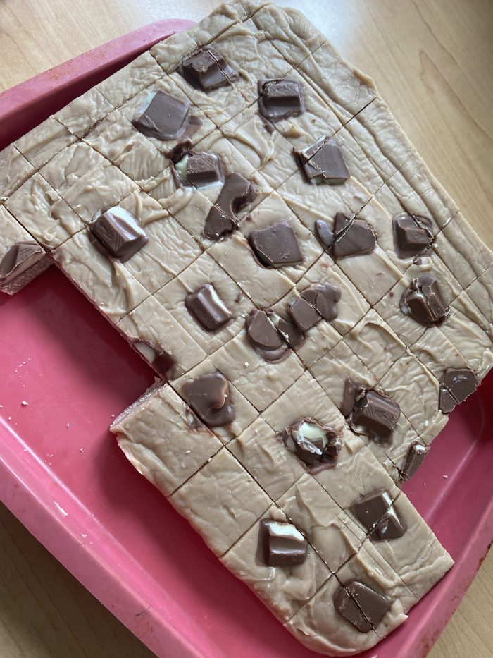 Master Frugal made this and cut it into slightly bigger pieces than I would have done as I’d have bagged it up into little bags to give as gifts to people for Christmas but his intention was to take it on a camp out with his friends so he went for larger chunks.