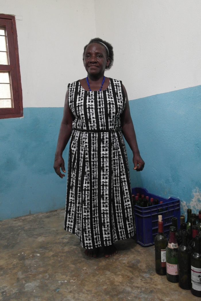 This is a Bertha. She is a food producer in Dar es Salaam who has received support from the Gatsby Trust. Bertha makes three different types of wine, garlic paste and a flour used to make porridge. In addition to making products she is also now training other women to do the same. Bertha works from a processing plant that she built herself at the back of her property, with room dedicated to each part of her business.