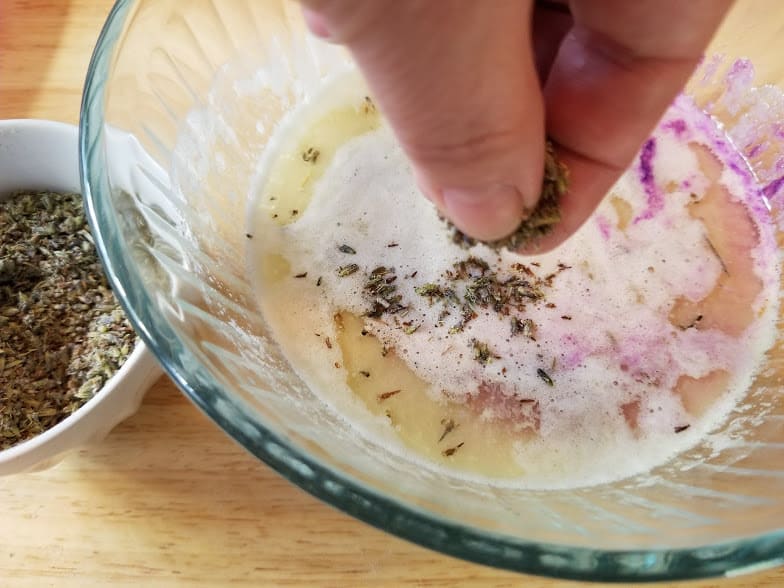- Sprinkle the reserved crushed lavender into your soap molds.