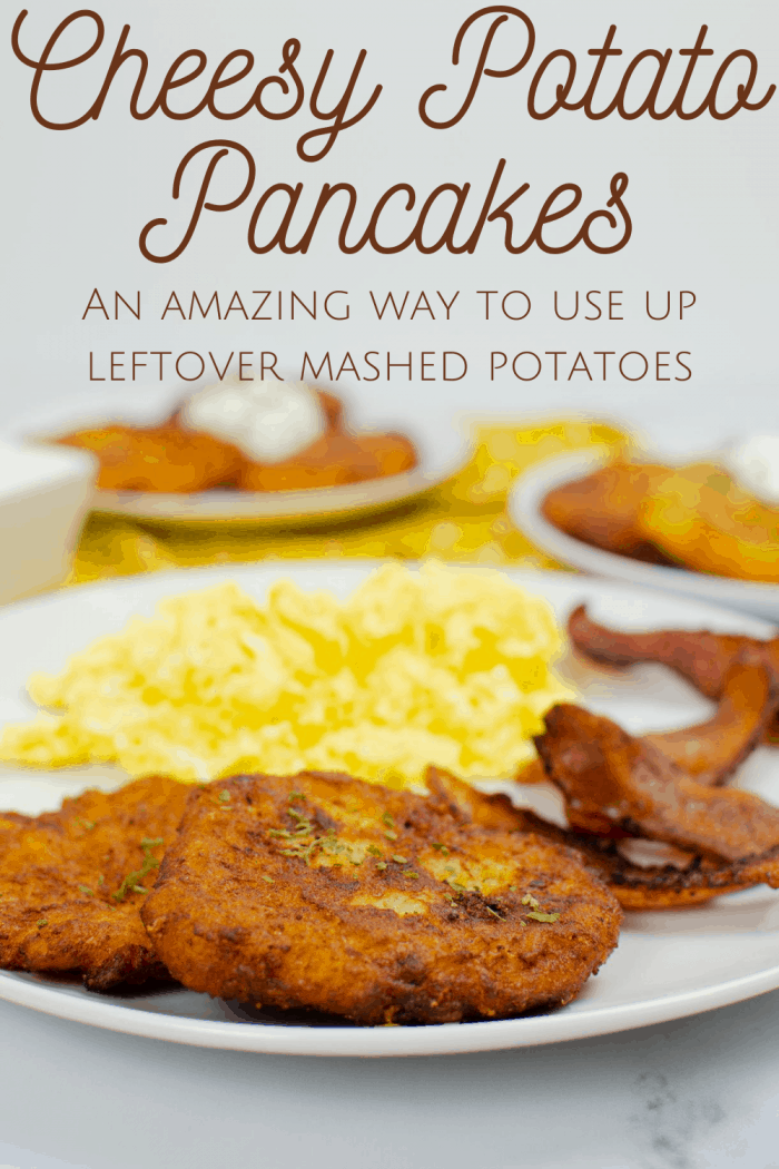 These cheesy Potato Pancakes are an amazing way to use up leftover mashed potatoes!