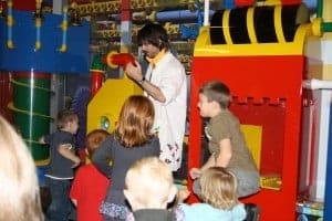 We were welcomed Professor Brick who taught us how you make Lego using his special machines (and with a bit of help from the kids) in his Lego factory which reminded me of Willy Wonka’s Chocolate factory without the chocolate ;-).