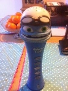 The seller practically forced this one on us – A Crazy Frog microphone and game for just 25p. I tried to say no but Master Frugal had 30p in his hand and was as determined to buy it as the lady was to sell it. To be honest I think the woman would have paid us to take it off her hands if we’d asked her too 😉 I have a sneaking suspicion that the batteries are not going to last very long at all.