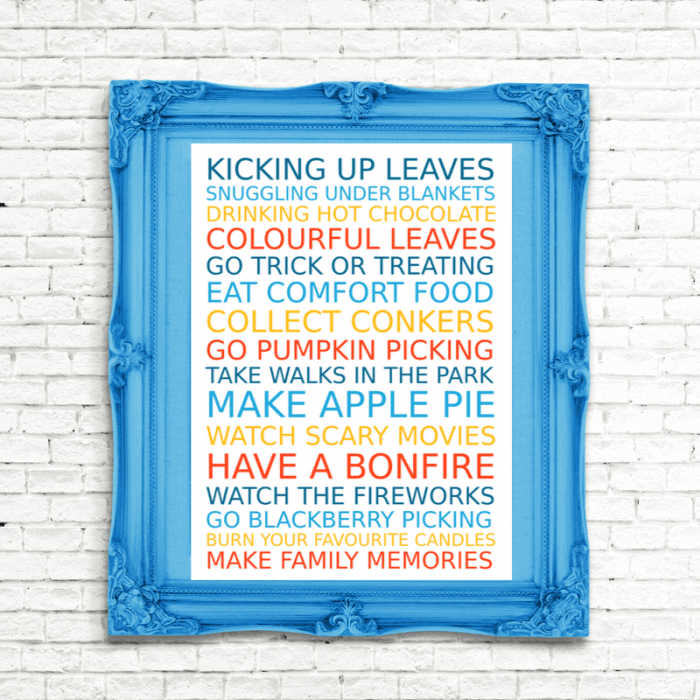 It’s been a while since I shared an idea for something to make with our FREE personalised poster maker so today, as I’m sat here contemplating the fact that it looks very Autumnal outside my house today, I thought I’d share an idea for an Autumn Family Favourites poster.
