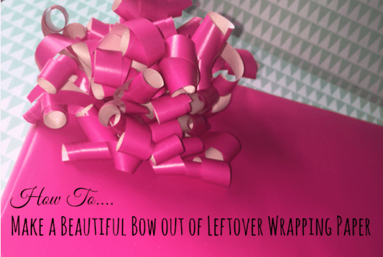 And the last thing I’ve learned about present wrapping on a budget is that you don’t need to buy an expensive matching bow because you can make one for free using your leftover wrapping paper….